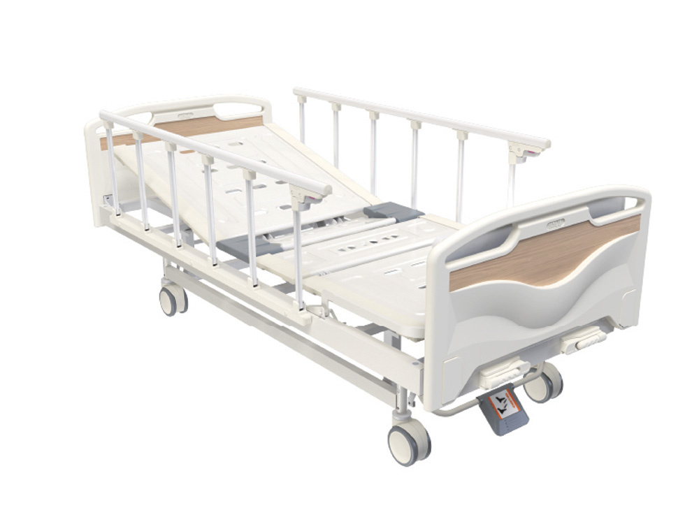 经典系列,通过手摇可实现背板升降、腿板升降、坐板凹陷(选配)等功能。经典手摇采用高精度锌铜基合金结构,使用寿命大于20000次。ABS床板可轻松解除,方便清洗和消毒。五寸中控双面轮,安静可靠,经久耐用,中央踏板控制四轮制动。